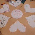 5. Kategóriák megbeszélése közösen, ISKOLA, CSALÁD, BARÁTOK, ÖNMAGAM. Mind a négy kategóriához készült egy poszter, a tanulók rárajzolták, ráírták, hogy miért hálásak az adott témakörön belül.