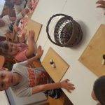 Boldog Dóra segítségével elmeséltem a Hálafa történetét, amit rajzokkal illusztráltam. Mese után beszélgettünk, majd több alkalommal felelevenítettük a történetet. Szerencsések vagyunk, mert a településünkön van egy gyönyörű liget közel az óvodánkhoz, mely a Wenckheim család birtoka volt. Jó idő esetén mindig elsétálunk oda és a gyerekek ott élvezhetik a friss levegőt, szabadon játszhatnak a csodás környezetben. Közben megfigyeltük, hogyan változnak a fák, terméseket gyűjtöttünk, amiből később állatokat készítettünk. A gesztenyéből gyurmával csigát készítettek a gyerekek. Egy kislány azt mondta alkotás közben, ő hálás azért, hogy szedtünk gesztenyét, mert így legalább tudtunk csigát készíteni.