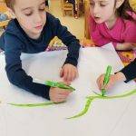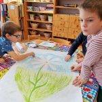 A 6. boldogságóránk témája a „megküzdési stratégiák” volt. Ezen téma megtervezése, nem volt egyszerű, hisz néha felnőtt emberek is megküzdenek olyasféle nehézségekkel, belső lelki gondokkal, mely leküzdéséhez, feloldásához, segítségre van szükségük. Fontosnak tartom e feszültségek oldását, hisz mindezen tényezők belső gondok, vívódások megbetegíthetik az embert, mely akár károsíthatják egészségüket. Óvodásaink részére, igyekeztem mindezt, életkoruknak megfelelő, érthető formában előadni, így az e havi boldogságóránkat a hónap meséjével indítottam. Majd beszélgetésünk során azt tapasztaltam, hogy a gyerekek ki így ki úgy, de megértették a mesét és az utánna való beszélgetésnek köszönhetően az adott témát. Egyesek a múltba, mások a jövőbe tekintve értelmezték a megküzdés fogalmát. Volt aki a cicáját siratta, mert meghalt, de vígasztalásként együtt örültünk annak, hogy a másik kis kedvenc életben maradt. Más űrhajós, állatorvos szeretne lenni. Igyekeztem tudatosítani bennük, hogy mindehhez nem csak megfelelő ruházatra, de nagyon sok tanulásra, kitartásra lesz szükség. Lesz akinek könnyebben, de lesz akinek nehezebben, megküzdve, nagy kitartással, akarattal sikerülhet. Beszélgetésünk során próbáltam a pozitív gondolatokat előtérbe helyezni. Mindezek után ellentétpár játékot játszottunk, mely nagyon tetszett a gyerekeknek. A gondok feloldására segítségül hívtuk Bagdi Bellát, akinek a zenéjére teljesen ellazulhattunk. Követtük a mozdulatokat, s a dal végére valóban ellazultunk. A szabadjátékba való visszavezetés előtt felajánlottam a gyerekeknek, hogy ha szeretne valaki színezni, rajzolni, elkészíthetjük együtt a csoport közös pajzsát, mely megvéd minket a bútól, bánattól. Felváltva, szinte mindenki részt vett a közös munkában, mely miután elkészült kihelyeztük a csoportszoba egyek jelentős helyére.