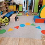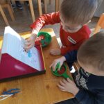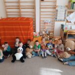 A „Kicsi vagyok én”, ölelőperc, Boldogságmondóka kezdőrituálét két relaxációs gyakorlat követte, a „Medve vagyok és cammogok” valamint a „Puha meleg, felengedek…”. Az egyik heti projektünkhöz (Testünk, érzékszerveink) is kapcsolódóan megneveztük és utánoztuk a munkafüzetben található érzelmeket ábrázoló arckifejezéseket, beszélgettünk arról, hogy kinek mitől lesz jobb kedve, jól megölelgettük egymást. A másik heti projektünkhöz (Medve-hét) pedig macis vonalvezetős, kódolós feladatlapokkal, akadálypályán való áthaladással gyakorolhatták a gyerekek a megküzdési stratégiákat. A téma továbbadása két módon valósult meg: a családok a macisarok kialakításához járulhattak hozzá egy-egy otthonról beküldött macis plüssel, könyvvel, rajzzal (stb.), az intézményükben található Maci csoportos pajtásainkat pedig azért látogattuk meg, hogy a február 2-i „medvejósló-nap” alkalmából tanult versünkkel és egy tányér gyümölccsel örvendeztessük meg őket (aminek nagyon örültek és viszonzásképp táncba hívtak minket az általuk ismert mackós zenére).
