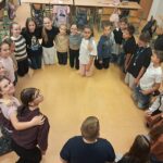 Nem sok időnk maradt az óra végéig, így egy relaxációs gyakorlatot követően megpróbáltak – több-kevesebb sikerrel – szív formában elhelyezkedni, és így készítettünk egy csoportképet.