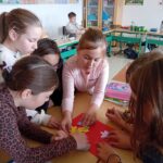 Ezután a csoportok összeragasztották a darabokat egész szívvé. Lám mennyire vegyes színűek és sokfélék a puzzle darabok, ahogyan mi magunk is. És lám együtt milyen szép dolgokra vagyunk képesek!