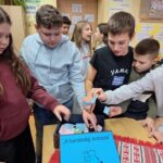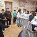 A következő órát beszélgetőkörrel kezdtük. Összegyűjtöttük a barátság feltételeit, majd egy pamutgombolyag segítségével „Kapcsolat-hálót” készítettünk. A tanulók egymásnak dobták a fonalat, és közben, aki dobta elmondta, hogy mit tart fontosnak a társas kapcsolatokban.
