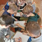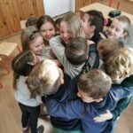 A boldogságórát relaxációval kezdtük, Bagdi Bella „Ellazulni jajj de jó” dala alapján. Majd megnéztük Bogyó és Babóca Barátság c. történetét. Beszélgettük a barátságról, mitől jó egy jó barátság. Képzeletben megsütöttük a Barátság sütinket, amihez összeszedtük a hozzávalókat, és egy muffin formára ragasztottuk a különböző ismérveket, hogy mi minden kell egy barátsághoz. Ezt követően elkészítettük a barátságpókhálót, amit nagyon élveztek a gyerekek. Egy kisgyereknek, akinek aznap nagy szüksége volt a figyelemre, szeretetet adtak a többiek hatalmas ölelés formájában. Az óra végén játszottunk egyet, mindenki a barátjával párba állt/ült és közösen, egymásra figyelve 1 filctoll segítségével kellett rajzolniuk. Megbeszéltük, hogy olykor segítjük, olykor támaszkodunk a barátunkra. Ez a feladat nagyon jól tükrözte ezt.