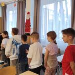 Először játszottunk egy kicsit: a Távíróoszlop játékban egymás mögött álltak a tanulók, a legutolsó rajzolt valami vidámat az előtte álló hátára, ő megpróbálta ugyanazt a következő hátára, így ment ez végig, majd a legelső ismertette, szerinte mi volt az. A nevetés nem maradt el.