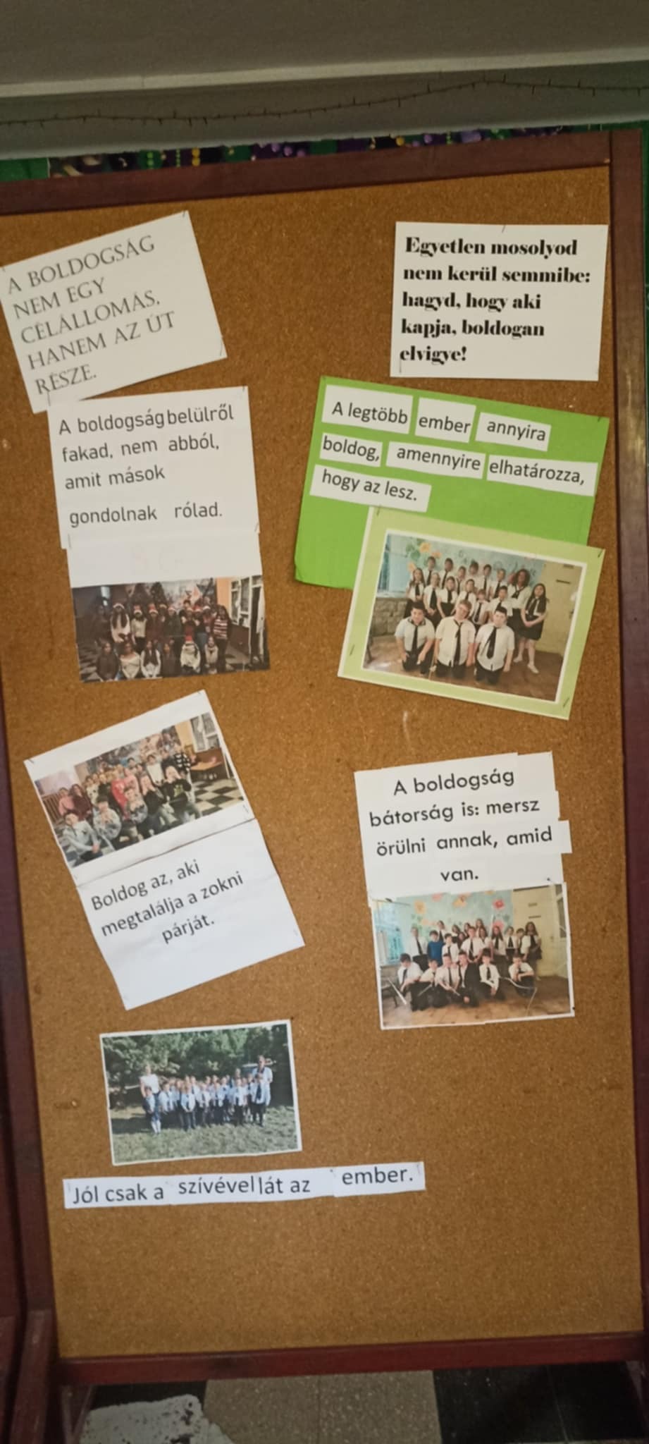 A nap végére minden osztály összeállította saját fotóját és egy boldogsággal kapcsolatos idézetet – amelyek az iskola aulájában kiállításra kerültek. A közös gondolkodás, az együttműködés és a játék öröme valódi csapatélménnyé formálta a feladatot.