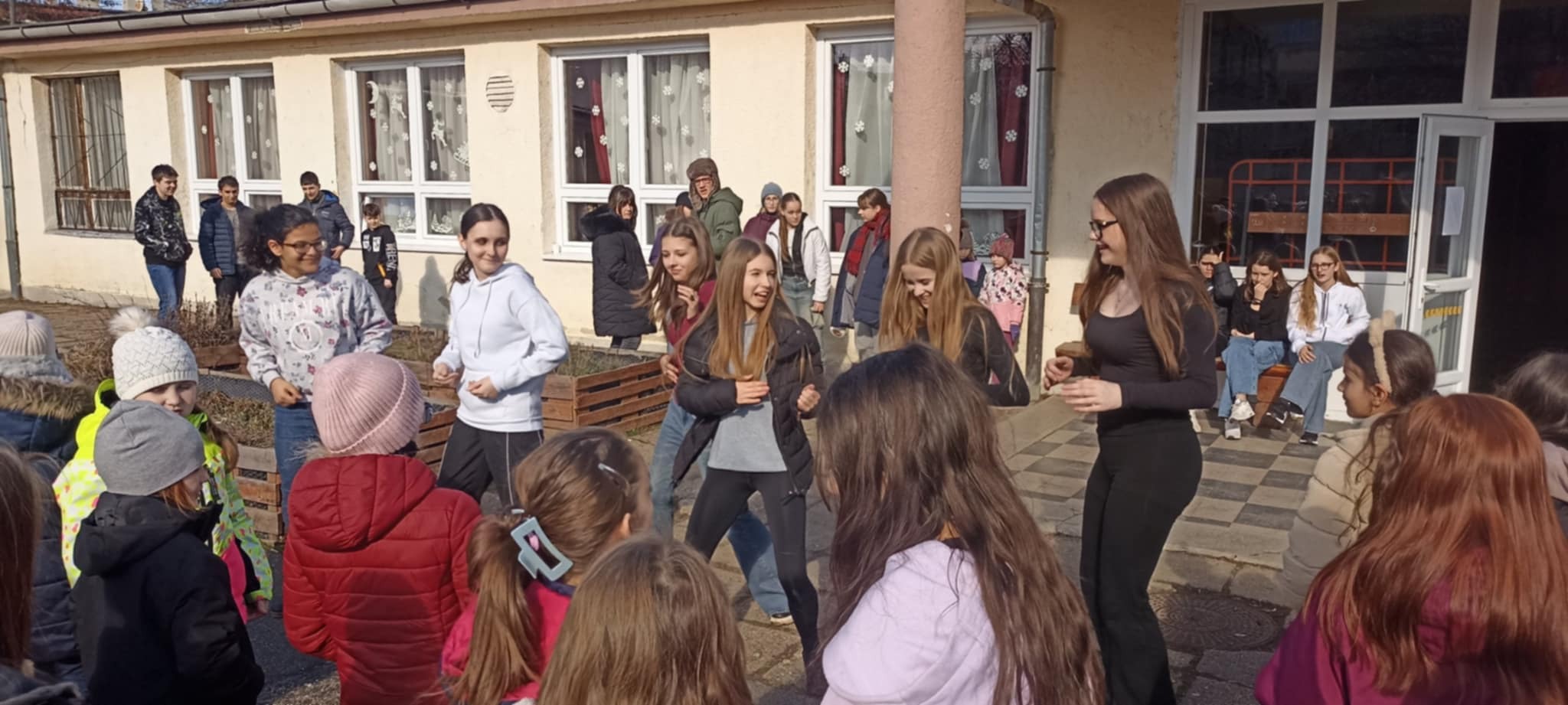 A nap csúcspontja a közös udvari tánc volt, ahol TIK-TOK Mashupokra mozdult meg az iskola apraja-nagyja. (Ha valaki nem tudná, mi ez – érdemes megkérdezni egy Z vagy Alfa generációs szakértőt! 😊)