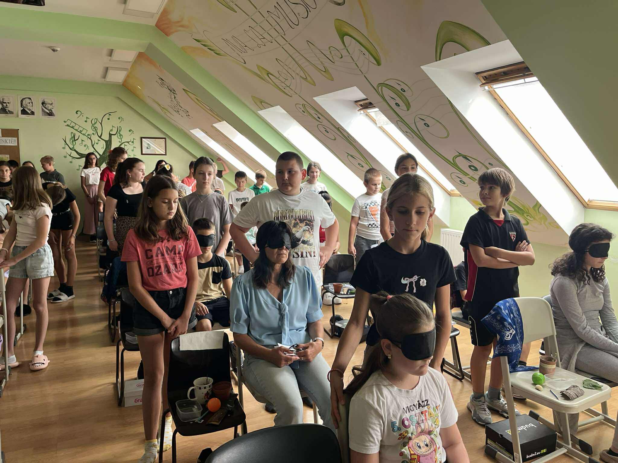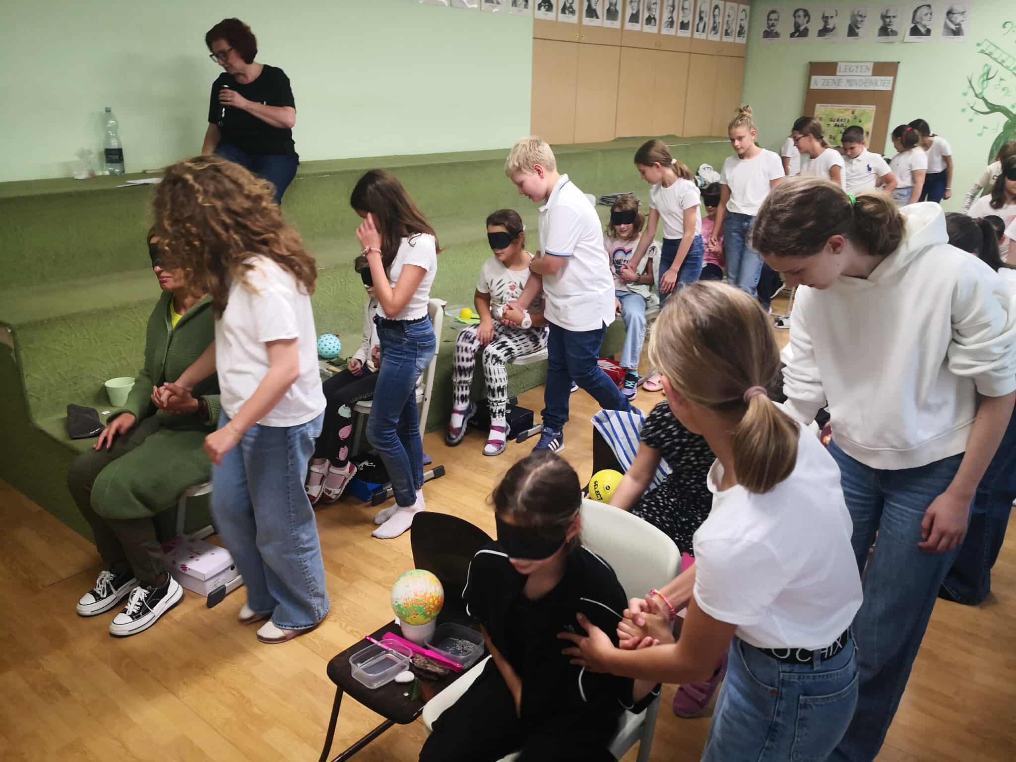 A pápai Erkel Ferenc Ének-Zenei Általános Iskolában idén különleges módon nyílt meg a tanév első Boldogságórája. Csákvári Regina pedagógus egy rendhagyó, érzékszervekre és képzeletre épülő programmal lepte meg tanítványait: a gyerekek a Láthatatlan Színház különleges világába léphettek be, ahol a zene, a fantázia és a hála élménye fonódott össze.
