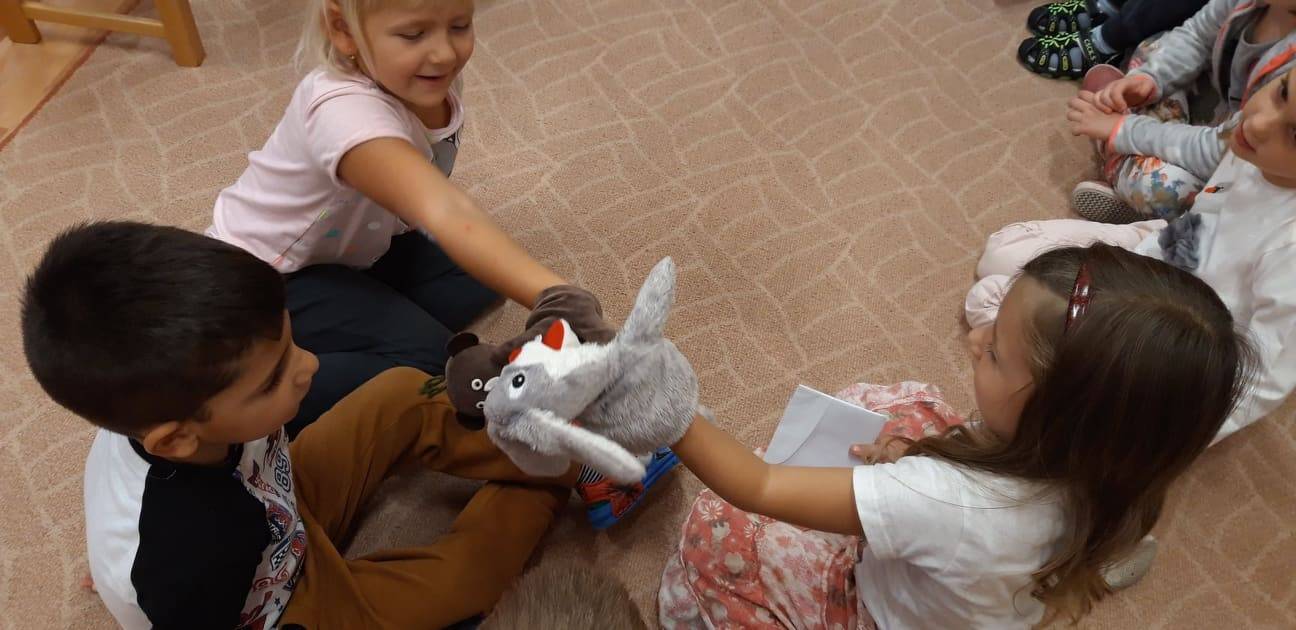 Szeptemberben a csoportomban minden nap foglalkoztunk a hálával. Sokat beszélgettünk, ki miért hálás vagy miért is lehetünk igazán hálásak. Ez alapján készítettük el csoport hálafáját . A gyermekek a szívecskékbe rajzolták a legfontosabb hálájukat. Felelevenítettük és megbeszéltük a „Hálafa” mesét. A gyermekeknek a bábok segítségével bemutattam a „Maci bajban van” című mesét, amit szintén megbeszéltünk majd a gyermekek is szívesen játszották újra a történetet.