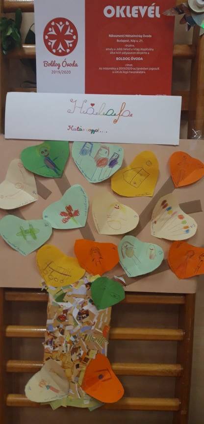 A héten tartottuk óvodánkban a „Hétszínvirág napokat” amire kiállítást szerveztünk. A csoportunk itt mutatta be mindenkinek a hónapunk legnagyobb háláját, azt az oklevelet ami igazolja, hogy „BOLDOG ÓVODA” lettünk.