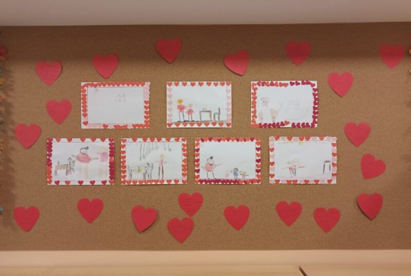 A Boldogság napját most először tudtuk megünnepelni csoportunkban. Ezen a napon mindannyian piros színű ruhát öltöttünk, a gyerekek kedvenc boldogságórás tevékenységeit játszottuk. Készítettünk csoportképet és egy olyat, amin az óvodásaim szívecske formát alakítottak ki. Erre a napra is készült boldogságórás faliújság. A megvalósításban nemcsak a gyerekek vettek részt, hanem a szülőket is bevontam. Minden család kapott egy piros papír szívecskét, amire ráírhatták, mi számukra a boldogság, milyen közös tevékenységeket szeretnek, milyen közös programok a kedvenceik. A gyerekek, pedig lerajzolhatták, hogy az oviban mit szeretnek a legjobban.
