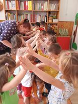 A témák lezárásaként a fenntartható boldogságról volt szó június hónapjában. Számunkra ez a terület összefoglalása az eddigieknek ahol az összes kapcsolódásával érhetjük el a teljes belső harmóniát. A fenntartható boldogság elérése a belsőnk és a külső környezet pozitív visszajelzéseitől töltekezik, ismerve erősségeinket, meglátva magunk körül a pozitív dolgokat, embereket és harmóniában élve a természettel. Környezetünk változtatásával nyílik csere lehetőség a személyiségfejlődés elősegítése után. Játékaink: – Szeretetfolyosó