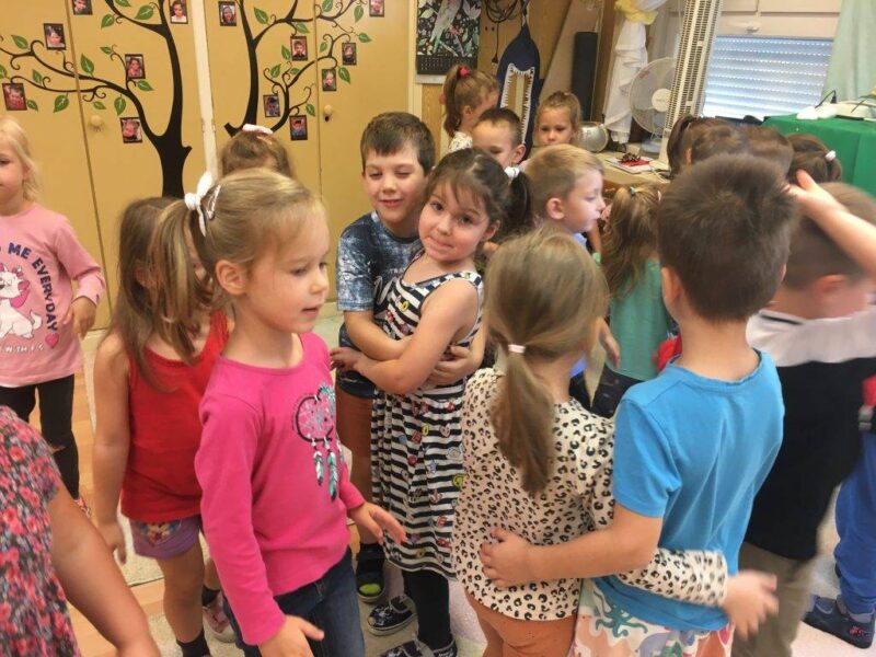 Csoportunkban először kerül bevezetésre a Boldogságóra, így ezeknek a gyerekeknek ez az első találkozásuk a programmal. Csoportunk tagja 26 fő 4-5 éves gyermek. A szeptemberi téma, a hála gyakorlásának megismertetése a gyerekkel pozitív érzésekkel párosult. A hónap dalát hallgattuk meg behunyt szemmel, ülve mozogtunk rá egyénileg. A magas csoportlétszám és a mindennapi hangos alapzaj dacára, a dal után csendben várták, hogy mi fog történni. Kérdésemre, hogy ki hallotta már a hála kifejezést, többen mondatba foglalták, hogy kinek miért hálásak. Válaszuk teljesen adekvát volt, ami azért nem meglepő, mivel a hétköznapokban gyakran használjuk ezt a kifejezést és gyakori magyarázattal szolgálunk a gyermekeknek arról, hogy nem természetes, hogy majdnem minden kívánságuk teljesülni szokott.