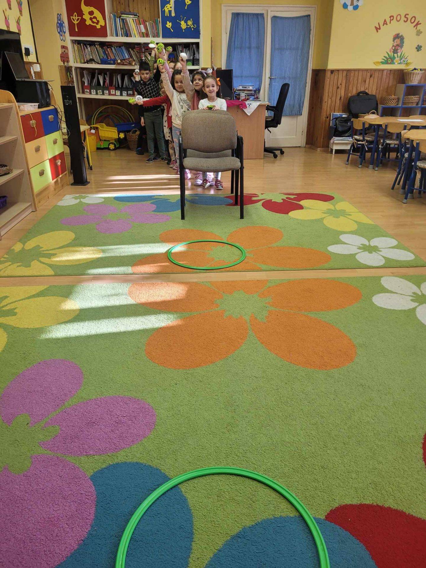 A hét folyamán a a célok kitűzését és elérését dolgoztuk fel. Sokat beszélgettünk arról, hogy mit is nevezünk céloknak, hogyan mondhatnánk ezt másképp és mi szükséges ahhoz, hogy mindezeket elérjük. Mindenki elmondta, hogy milyen céljai vannak és ezt egy célbadobós játék során hangosan kimondva tudatosítottam, megerősítettem bennük. Igyekeztem meglévő ismereteiket felidézni és arra támaszkodva adni át a számukra új ismeretanyagot. Mesélésnél arra helyeztem a hangsúlyt, hogy megértsék, bármit el tudnak érni, csak nem szabad feladni céljaikat és ki kell mellette tartani mindvégig. Vizuális tevékenység alkalmával közös munkát tervezve/Boldogvár színezése/, a közösségi érzést és az egymáshoz való pozitív viszonyt, kézügyességüket kívántam erősíteni, fejleszteni. Mindemellett a z alkalmazkodási és együttműködési képességeiket is pozitívan befolyásolta. A téma elmélyítését és ahhoz való személyes kötődést a célok kitűzése jelének kiszínezésével igyekeztem biztosítani. Célul tűztük ki a tevékenység elején, hogy megtanulunk bukfencezni/gurulóátfordulás előre/, mely a tevékenység főgyakorlatát képezte. Volt aki több, volt aki kevés, de olyan is, aki egyáltalán nem igényelt segítséget. Mindenkinek sikerült megcsinálni, mely hatalmas boldogsággal és büszkeséggel töltötte el őket. Az egész hetünket a játékosság és a felhőtlen szórakozás, boldogság érzése hatotta át, mely jól visszatükröződött a gyermekek arcán!