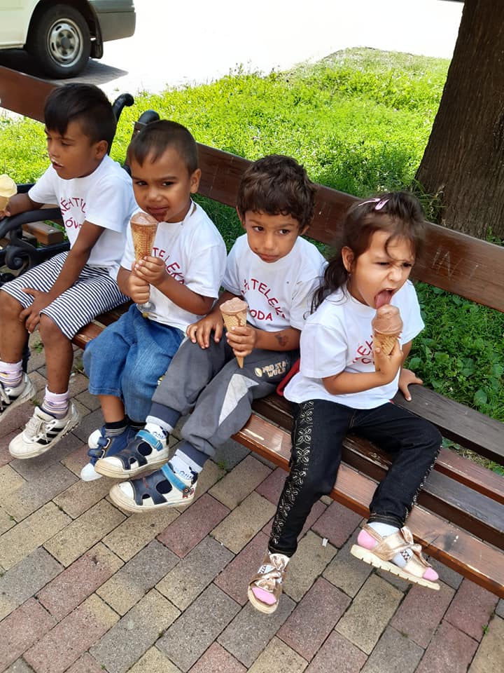A nyár közeledtével sokat sétálunk- a lehetőségekhez mérten kirándulunk. Mindennap igyekszünk minél több pozitív élményt biztosítani. Legyen az egy fagyizás, vagy egy új játék öröme. A nyár további része rengetek meglepetést tartogat még a számunkra. / homokvár építés, fürdés, stb/