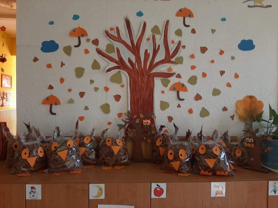 A „hálafa” őszi leveleiből boldog baglyokat készítettünk és hálásak vagyunk azért, hogy ismét együtt lehetünk.