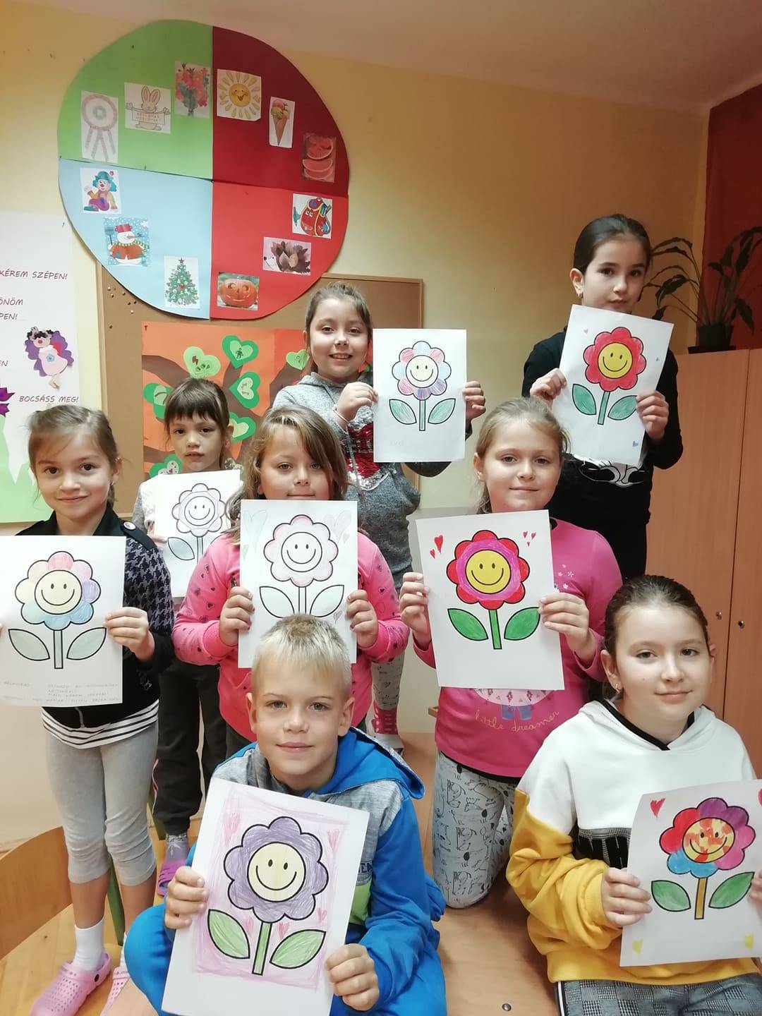 Másodikosaimmal, szívem csücskeivel kölcsönösen élvezzük a boldogságórákat. Jó hangulatban végezzük a feladatokat, együttműködnek, nyitottak a gyerekek. A zenék, relaxációk, meditációk még változatosabbá, a játékok örömtelibbé teszik a közösen eltöltött időt. Készítettünk közösen hálafát, melynek a leveleire lerajzolták, hogy mi mindenért hálásak. Vidám hálavirágok, hálabefőttek díszítik osztálytermünket. Hálás vagyok a szülőknek, mert egyre több szülő ír pozitív gondolatot, megerősítést gyermeke tolltartójába meglepetésként. Mindannyian várjuk a következő boldogságórákat.