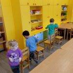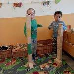 A gyerekek a játszószőnyegen szívesen építenek fakockából magas tornyot. Fontos felhívni a figyelmüket ennek veszélyére, mert a dőlő torony balesetveszélyes. Így most különösen örültek a kihívásnak, hogy versenyezhettek, ki épít magasabb tornyot.