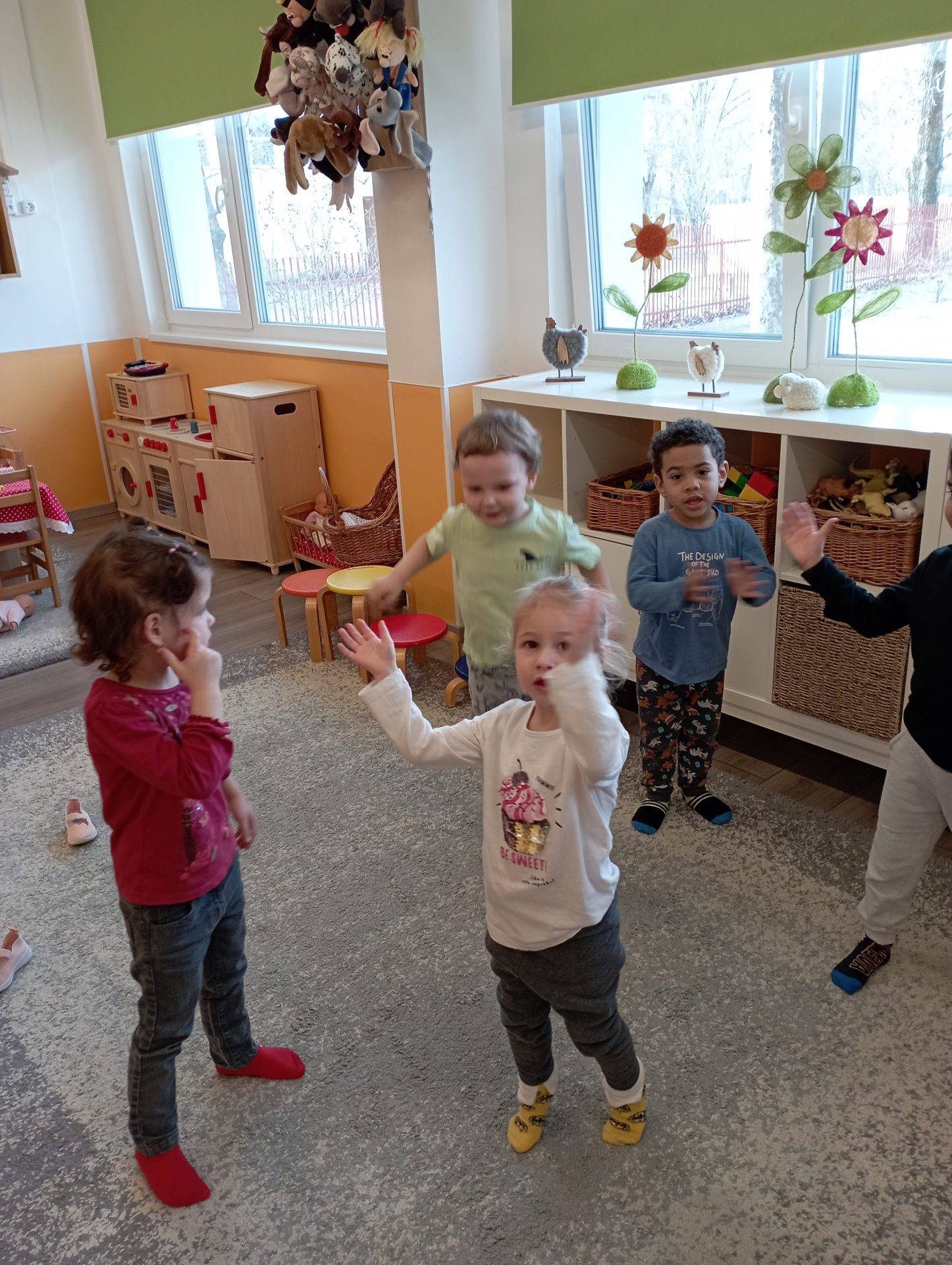 A „Cápatámadás” játékot örömmel játszották. Mivel kicsik még több magyarázatot igényelt, hogy nem egy gyerek állhat a karikában (mint a már ismert „Mókusok ki a házból…” játékban). A végén azért nagy derültséget keltett, hogy egy-egy karikába egyre többen kellett, hogy beférjenek. Ez jó játék volt a társaskapcsolatok, szociális kompetenciák erősítésére.