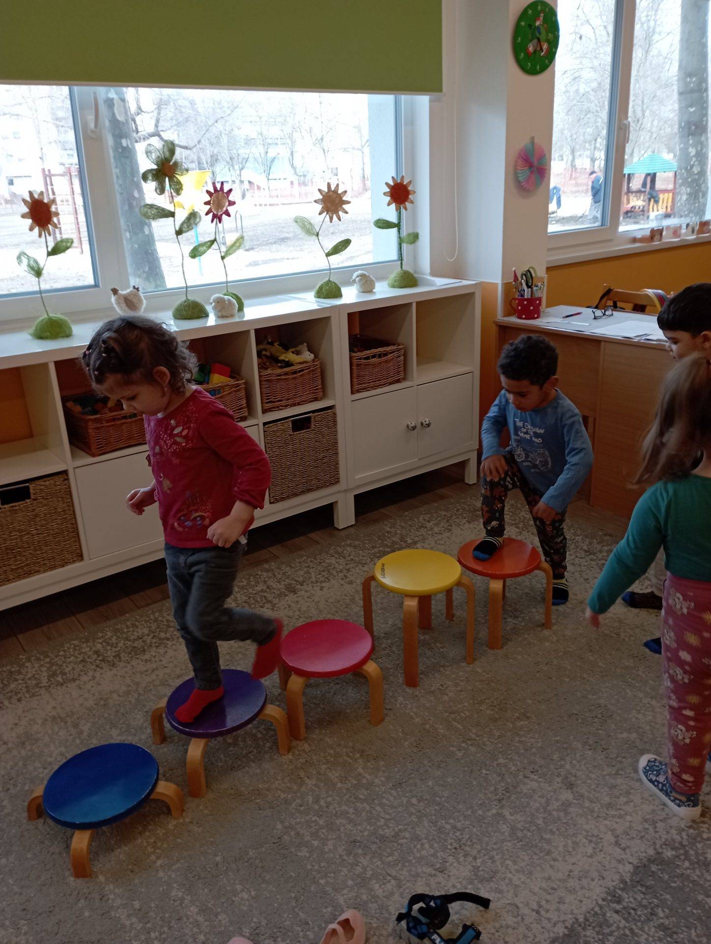 A gyerekek nagyon lelkesen végezték az akadályok leküzdését. Nagyon motiváló volt, hogy minden feladatot a levélből olvastam fel, így igazán beleélték magukat a meseszituációba.