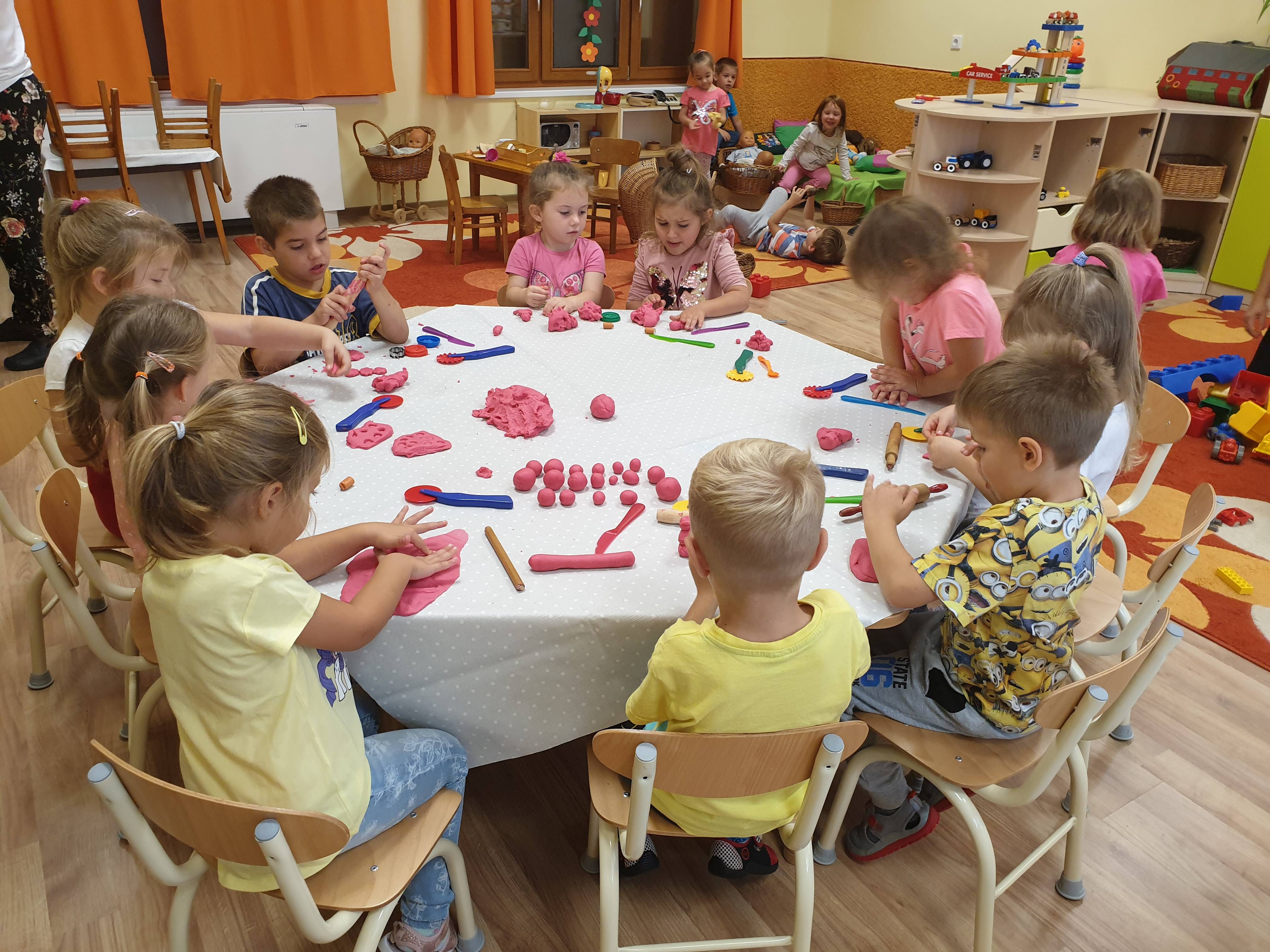 A gyerekekkel körbe ültünk le a szőnyegre, ahol egy majd kettő babzsákot adogattunk körbe. Nehéz volt számukra folyamatosan követni a babzsákok útját illetve odafigyelni a másikra. Ezt követően ‘hála sütiket’ készítettünk, amit csoporttársaiknak valamint hozzátartozóiknak adhattak. A legjobban a ‘Boldog vagyok…’ című dal meghallgatása valamint mozgással kísérése tetszett nekik, melyet a hónapban többször megismételtünk.