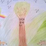 Az áprilisi boldogságórát egy játékkal kezdtük: a gyerekek improvizáltak olyan szituációkat, amelyben véletlenül megbántottak/megsértettek valakit. Ezután bocsánatot kellett kérniük, a másiknak pedig meg kellett bocsájtani. Arról beszélgettünk, mennyire volt nehéz a megbocsájtás. Ezután megkülönböztettük a véletlen és a direkt megbántást/megsértést. A tanteremben kijelöltük a megbocsájtás erdejét és a harag labirintusát. A gyerekek beálltak arra a helyre, amelyikre hajlamosnak érezték magukat. Azért haragszom mert…. Szeretek megbocsájtani, mert… – befejezték a mondatokat. Megbeszéltük, miért fontos a lelki egészségünk szempontjából a megbocsájtás. Példákat mondhattak a gyerekek arra, hogyan bántódtak meg, miként tudtak megbocsájtani. Kit mivel bántottak meg és hogyan engesztelték ki. Felidézték, milyen felszabadító érzés a megbocsájtás, a bocsánat kérés. Ezután lerajzolták a haragos és a megbocsájtó gyerek arcát. Eljátszottuk a szabadulás útját. Megbeszéltük, mely tulajdonságok segítenek a megbocsájtásban: türelem, szeretet, önbizalom…stb. Lerajzolták a megbocsájtás erdejét, ahol a fák mind egy-egy ilyen tulajdonság képviselői. Meghallgatjuk a hónap dalát.