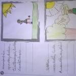 A gyerekekkel az óra elején a testmozgás fontosságáról, az egészséges életmódról beszélgettünk, meglévő ismereteik alapján. Elolvastam nekik a hónap meséjét. Ügyesen sorolták fel a két szereplő tulajdonságait. Lerajzolták Kocogáspárt és Tetétlent. Leírták az előbb felsorolt tulajdonságokat. Megbeszéltük, mennyire fontos az egészséges életmód a boldogság, optimizmus fenntartásához. Egyetértettek abban, hogy az egészséges test és egészséges lélek harmóniában van egymással. Végül lerajzolták a képzeletbeli kalandparkot, közben meghallgattuk a hónap dalát.