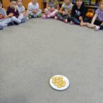 Szerdán hoztam egy tányér kekszet, de sajnos csak kevés volt. Azért a biztonság kedvéért megszámoltuk a kekszet is, a csoport létszámát is, de így is arra jutottunk, hogy a keksz jóval kevesebb, mint ahányan vagyunk. Mit tehetünk? Hamar rájöttek hogy el kell törnünk, és így mindenkinek jut belőle. Miután megettük, arról beszélgettünk, hányféle módon tudjuk kimutatni a szeretetünket a barátaink, pajtásaink felé. A segítségadástól az ölelésig, rengeteg dolgot sikerült összegyűjtenünk.