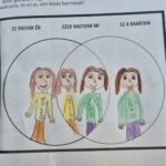 Minden héten tartunk boldogság órát. A hónap témája különösen fontos és jól körbejárható a gyerekek számára. Elsősorban a családtagok és barátok köré építettem a feladatokat. Interaktív bemutatással magyaráztam a fogalmakat. A gyerekek készítettek képregényt,melyen egy támogató cselekedetet jelenítettek meg. Készítettek halmazos feladatot, saját maguk, a társuk és kettőjük rajzával. Sokszor elénekeltük a hónap dalát. Az órai eleji játékok között volt a „melegzuhany” játék, amelyet nagyon szerettek a gyerekek.