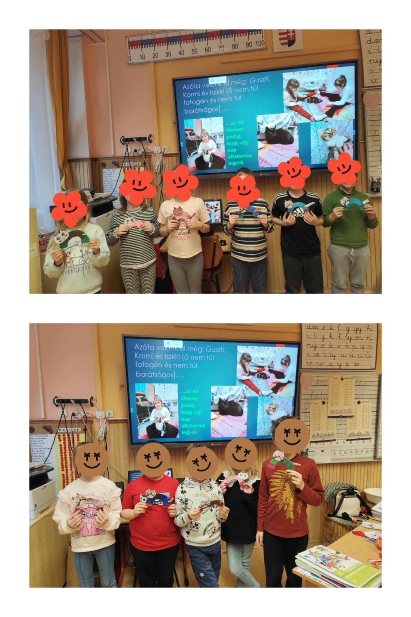 Ehhez kapcsolódva a Macskák világnapját választottam egyik feldolgozási témának. Híres macskák bemutatásával kezdtük, majd rávilágítottunk a macskák stresszcsökkentő képességére. A dorombolás mint megnyugtató és ellazító „eszköz” jótékony hatásáról beszélgettünk, majd relaxációs gyakorlatként néhány percig dorombolást hallgattunk.