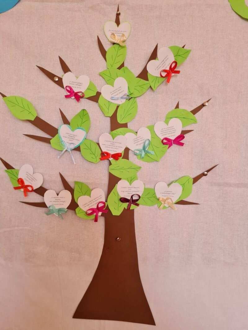 Elkészítettük a mi bölcs fánkat, rajta csupa olyan idézettel, ami a boldogságról, a szeretetről szól.