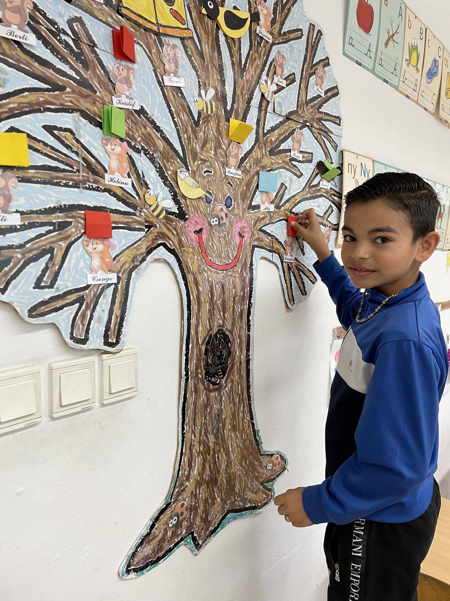 Elképzeltünk egy olyan galaxist, ahol a ott élő emberek, így a gyerekek is a 10-es szám köré szervezik az életüket. A mi Galaxis fánkra, ami az Univerzumunk közepén áll, színes lapokra bíztató üzeneteket írtak galaxis gyermekei. A cetliket utána felragasztgattuk a Galaxis-fára.