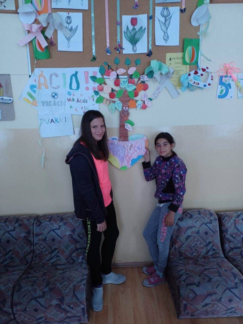 A bolygók mellé minden tanuló Fenntartható boldogság témájú levél-üzeneteket készített, amivel a fát díszítettük.
