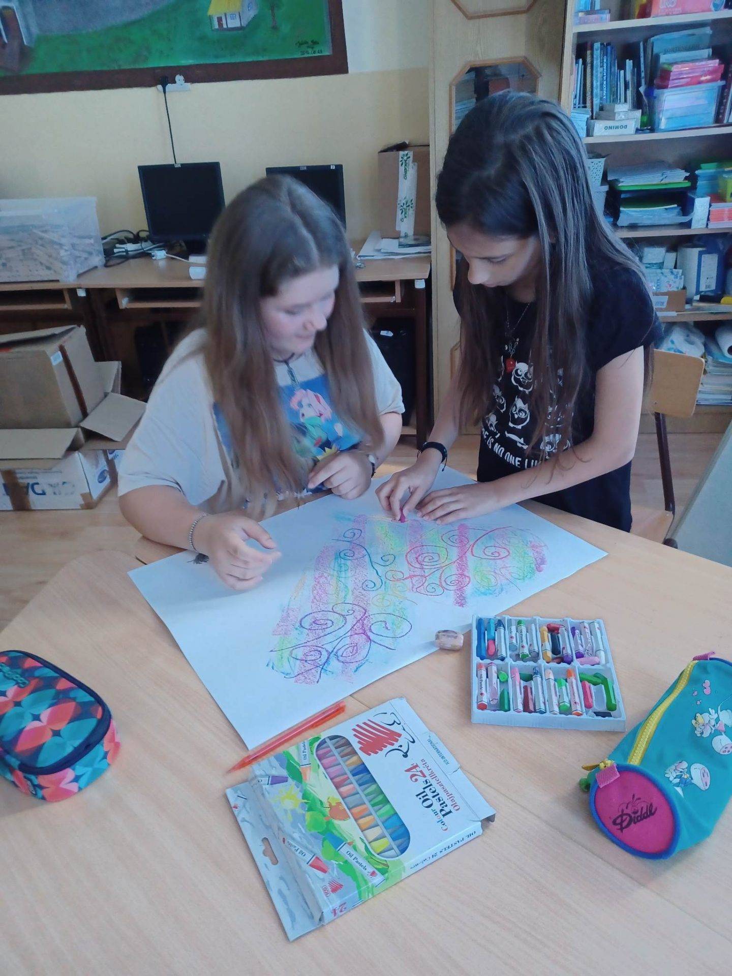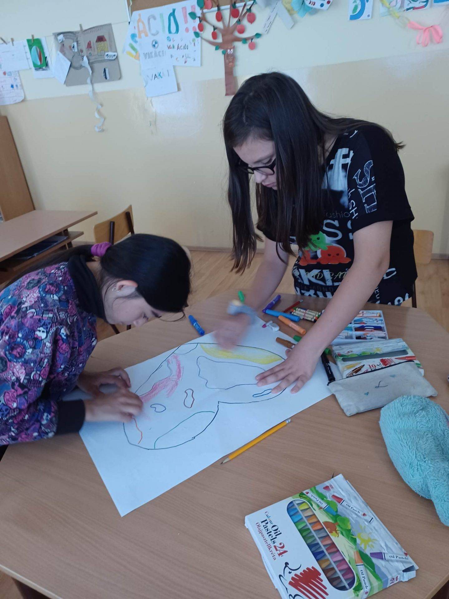 Az osztály a tanév utolsó boldogságóráján is csoportokban dolgozott.