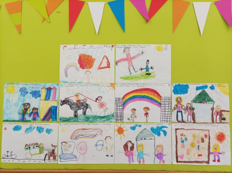 Ezután beszélgettünk az évünk legboldogabb pillanatairól, amit a gyerekek le is rajzolhattak.