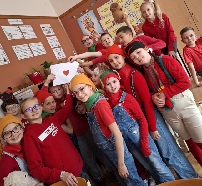 Egész nap a suliban törekedtünk tiszta szívből minél több mosolyt előcsalni, figyelni egymásra, meghallgatni mindenkit, pont úgy, mint SZÍVDOBBANÁS faluban, ahol a boldog szív nem harsány. Meghallgat, segít, jelen van.