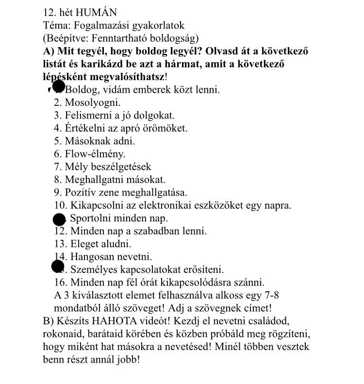 A) Mit tegyél, hogy boldog legyél? Olvasd át a következő listát és karikázd be azt a hármat, amit a következő lépésként megvalósíthatsz!