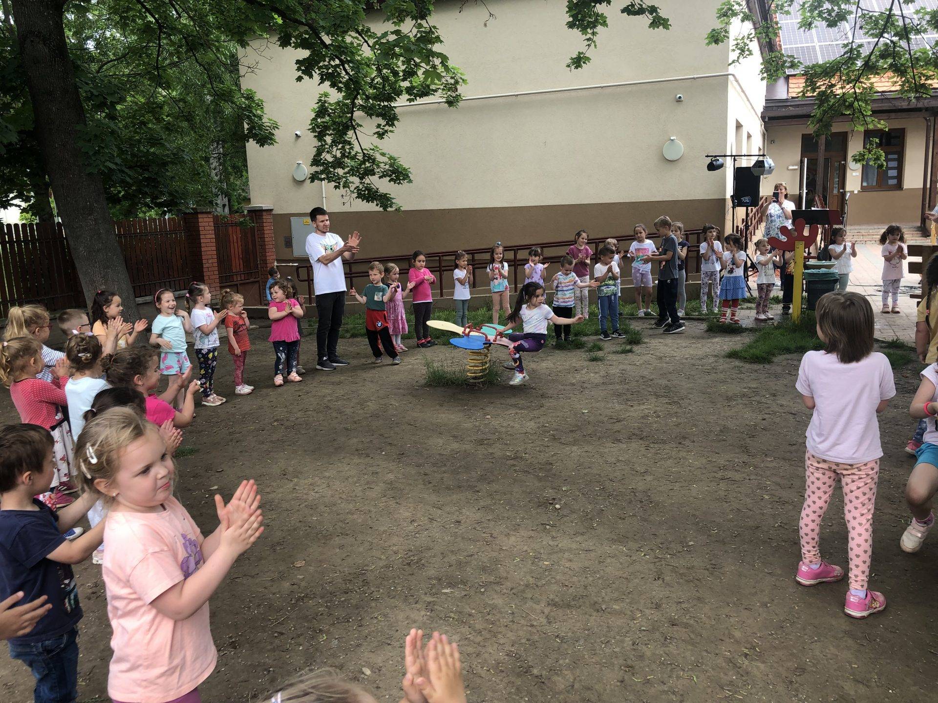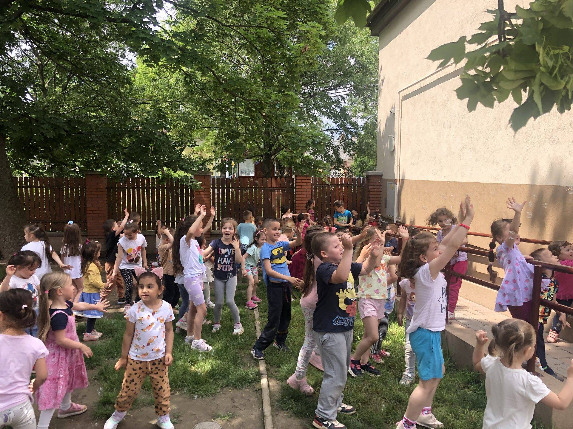 Igaz, nyáron nem a megszokott módon folyik az óvodai élet, kevesebb gyerek jár az intézménybe, többet vagyunk az udvaron, a boldogságfoglalkozást sok gyerek igényli. A gyerekek kívánsága szerint, több boldogságdalt is hallgattunk, énekeltünk, táncoltunk rájuk. Nyáron talán még felfokozottabb a gyerekek mozgásigénye, ezért ilyenkor is szakítunk időt egy kis relaxációra, hogy kicsit lelassulhassanak, ellazulhassanak az állandó pörgésben. Minden nap mesélünk, mely a gyermekek érzelmi intelligenciájának fejlődéséhez nagyban hozzájárul. A homokozóban több gyerek segítségével megépítettük a boldogságvárat, melyet fűvel, virágokkal díszítettünk. Közösen visszaemlékeztünk a legkedvesebb „boldogságjátékokra”, melyeket az udvaron többször is játszottunk. Ilyenek voltak a Zombis, Cápatámadás, Hajótörés és a Felvidítós játék. A Föld napján a szelektív hulladékgyüjtést is gyakoroltuk, amely játékot a gyerekek gyakran újra kérnek, így rögzíthetjük a már elsajátított ismereteiket. Mindezekkel közelebb hoztuk célunkat, a fenntartható boldogságot.