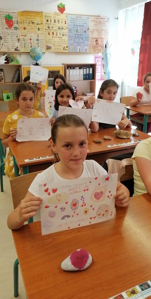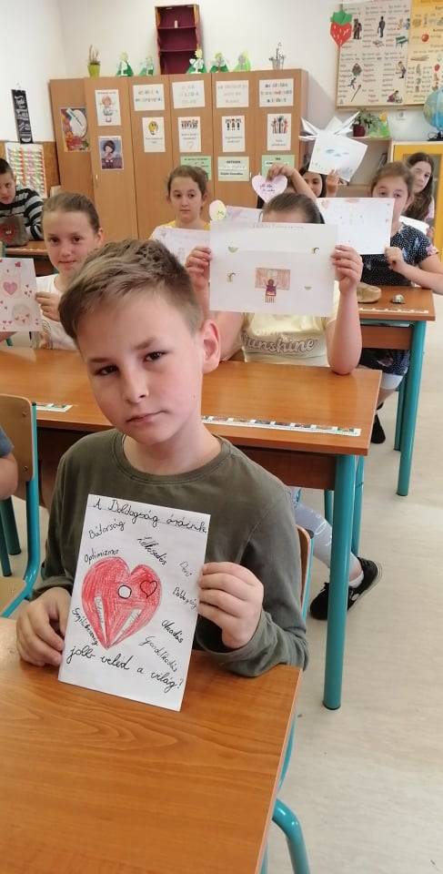 Az utolsó hónapban megbeszéltük a gyerekekkel, hogy a ” Boldogság mindig ott van körülöttünk!” A családban otthon az iskolában és mindenütt a Világban! Mindig- mindenben csak a jót keressük – Ezt próbáltam elmagyarázni nekik a Boldogság órán keresztül! Lerajzolták , hogy melyik Boldogságóra tetszett neki ebben a tanévben közben az utolsó hónap Boldogság dalát hallgattuk! Nagyon sokan azt nyilatkozták, hogy minden óra nagyon tetszett nekik!