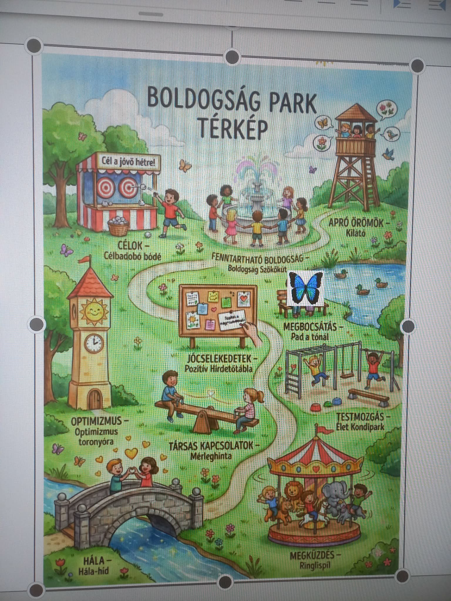 A boldogság világnapja alkalmából szerettünk volna egy virtuális sétára indulni. Mivel az osztályunk jelképe a pillangó, így egy pillangó segítségével jártuk be a térképet. Minden megállónál különböző feladatokat oldottunk meg. A legtöbb meglepetést a megbocsátás gyakorlása okozta. Mint kiderült a héten többen úgy érezték, hogy megbántottak valakit és nem volt lehetőségük bocsánatot kérni, így most örültek, hogy esélyt kaptak rá. Az óra végén mindenki elkészíthette a BÓKjait, amit nagy örömmel vittek haza.