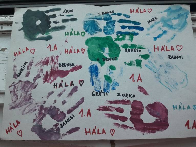 Az iskola kapui megnyíltak előttünk. Elsősök lettünk. Hálánk jeléül tenyérnyomatot készítettünk. Jobb velünk a világ!