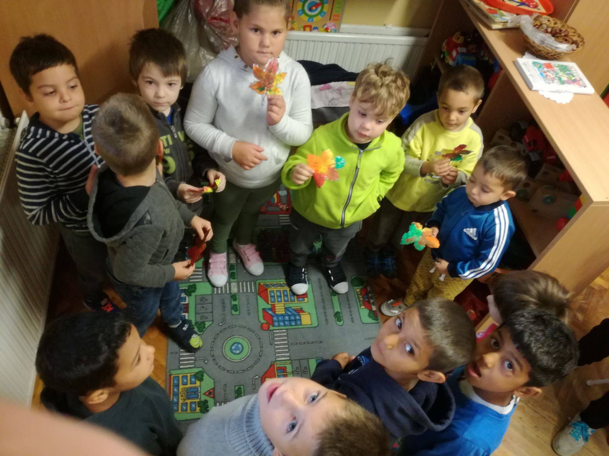 Szeptemberben újra megkezdtük a boldogságóra programot a csoportban. A boldogságfokozó hála volt a téma. Őszi faleveleket adtunk körbe, amellyel az egymásra figyelést gyakorolhatták. Jó érzés volt látni, hogy milyen nagy figyelmet fordítanak egymásra és segítik az együttműködést. A levelekből hálafát készítettünk. Aki szerette volna annak a kisgyereknek a falevele mellé tehette a falevelét akinek szeretett volna valamit megköszönni vagy valamiért hálás. Közben sokat beszélgettünk a hála fogalmáról és arról, hogy milyen jó érzés kapni és adni kedves szavakat.