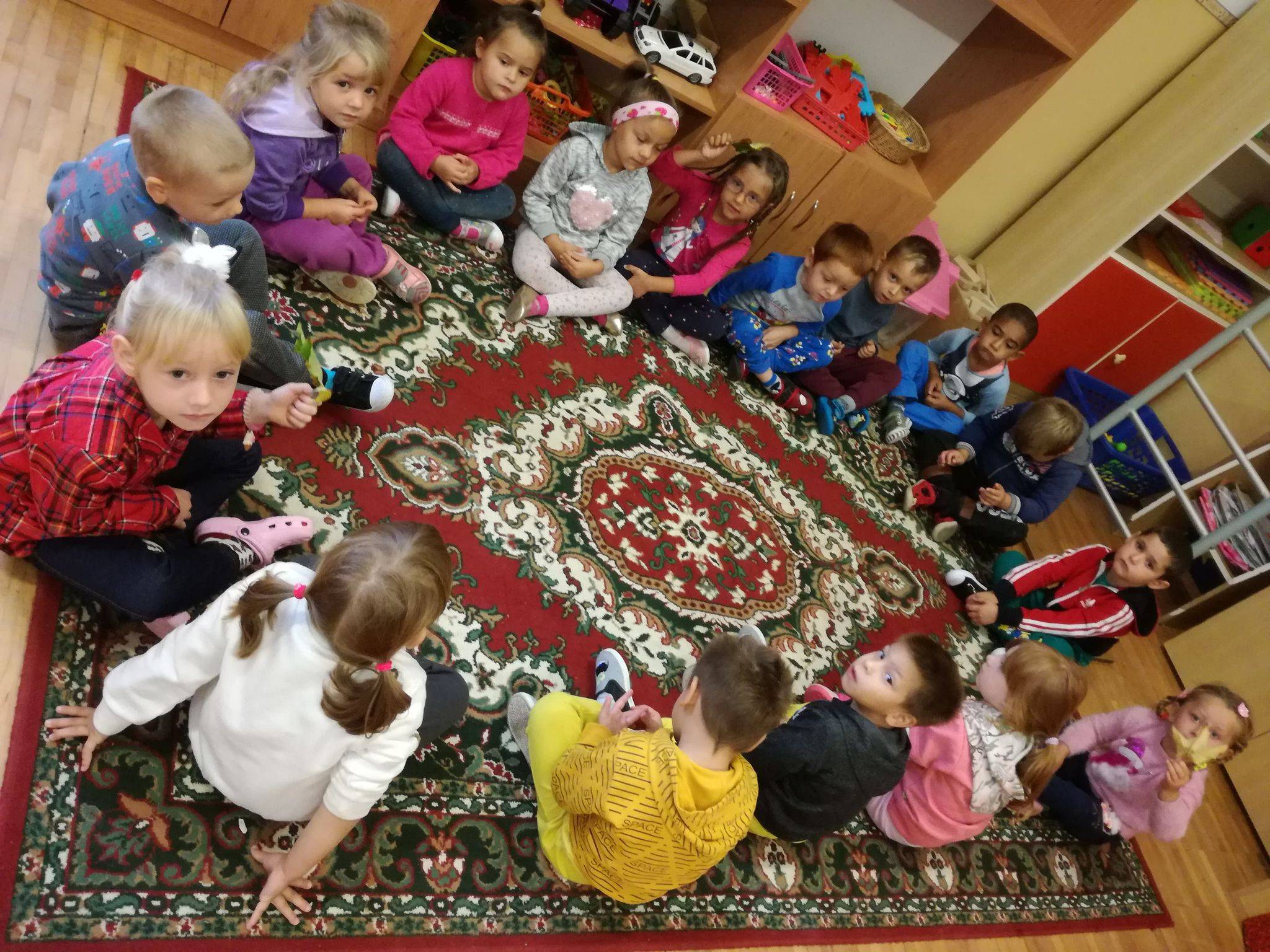 Gondolat ébresztőként elolvastam a gyerekeknek A hálafa története című mesét. Utána megkérdeztem őket , hogy ki-mit gondol, mi az amiért hálásak lehetünk. Sokféle dolgot felsoroltak a gyerekek: pl.: hálásak az almáért, amit a fa ad nekik, hálásak a játékokért, amit most kapott a csoportunk, azért is hálásak, hogy újra együtt tudnak játszani a barátaikkal. Hoztam nekik három őszi falevelet. A szőnyegre körbe ülve adogatták egymásnak körbe. Először egyet, majd kettőt, végül mind a hármat. Közben figyelniük kellett egymásra, hogy a három levél ne találkozzon össze. Ezzel az egymásra való odafigyelést tettük próbára. A hála, vagy az egymásra való odafigyelés a pozitív gondolkodás része ami a boldogságunkhoz vezető út egy-egy mérföldköve lehet.