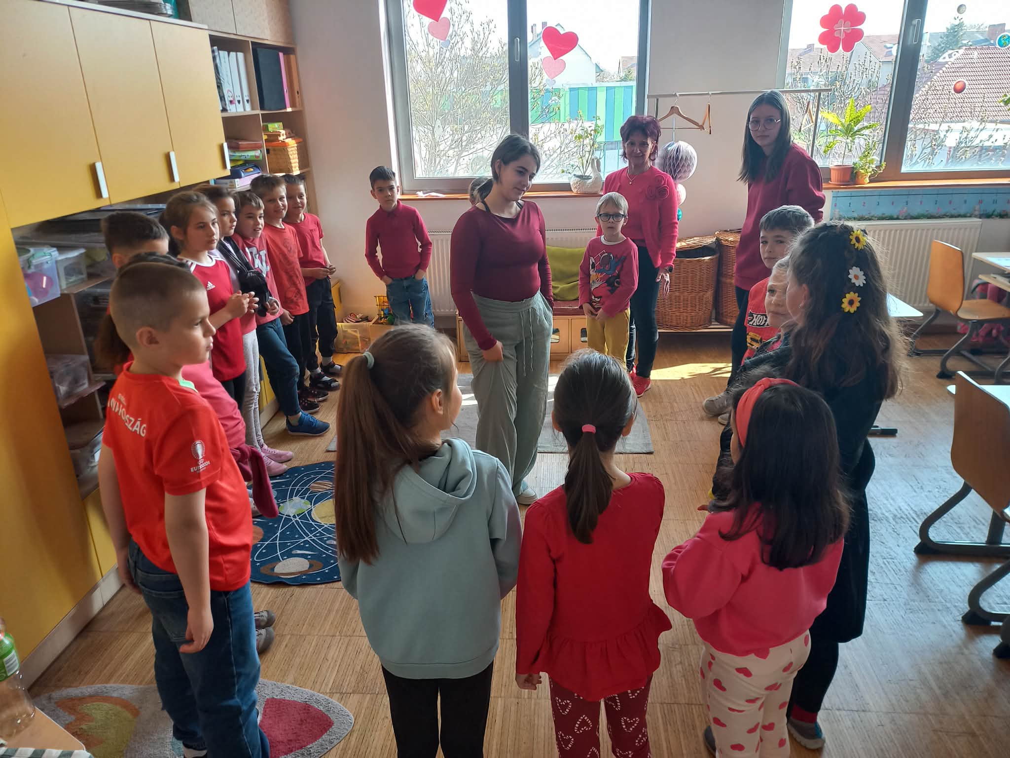 Március 20-án megünnepeltük a Boldogság Világnapját. A programot reggel egy közös megnyitóval indítottuk. Ezen a napon mindenki piros felsőben érkezett. A megnyitón közreműködtek a 7. b és 4. a osztályos tanulók, akik ismertették a Boldogság Világnap eredetét és küldetését, valamint megosztottak tíz ötletet, amivel jobbá, boldogabbá teheti mindenki a mindennapjait.