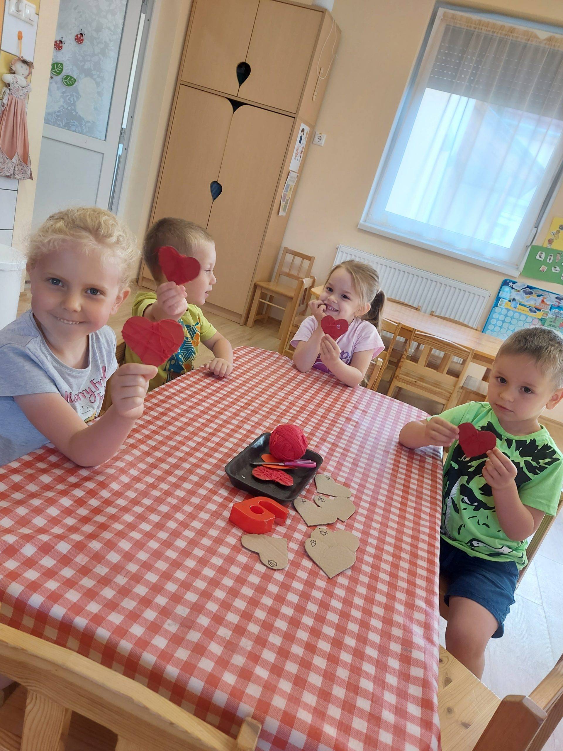 A Boldogságóra Program utolsó hónapjában átismételtük a nevelési év során tanultakat, felelevenítettük a szokás-és szabályrendszerünk azon elemeit, melyek a boldogsággal kapcsolatosak és a mindennapok részévé váltak. Készítettünk fonalszíveket: előre kivágott karton szíveket tekertünk körbe piros fonállal. A piros fonál körbeszőtte a szívet boldogsággal. Voltunk örömsétán is, mely során gyakoroltuk a jó cselekedeteket: a településünkön található kupakgyűjtő helyre – ami szív alakú -, műanyag kupakokat vittünk, segítve ezzel a jótékonysági adományozást. A sétát fagylaltozással zártuk – élveztük az élet apró örömeit, a fagyis néninek pedig hálásan megköszöntük a fagyit, majd a séta segítségével lemozogtuk az elfogyasztott édességet. Elkészítettük a csoportunk Boldogságtablóját is. Az év során készül fotók közül válogathattak a gyerekek az alapján, hogy ki melyik boldog pillanatunkra emlékszik vissza szívesen, és mindenki felragaszthatta a számára legkedvesebb emlékét a tablóra. Közben felidéztük, hogy melyik képen mit láthatunk: mit csináltunk, hol jártunk, miket tanultunk meg, hogyan lettek egyre ügyesebbek, mennyi élményben volt részünk.