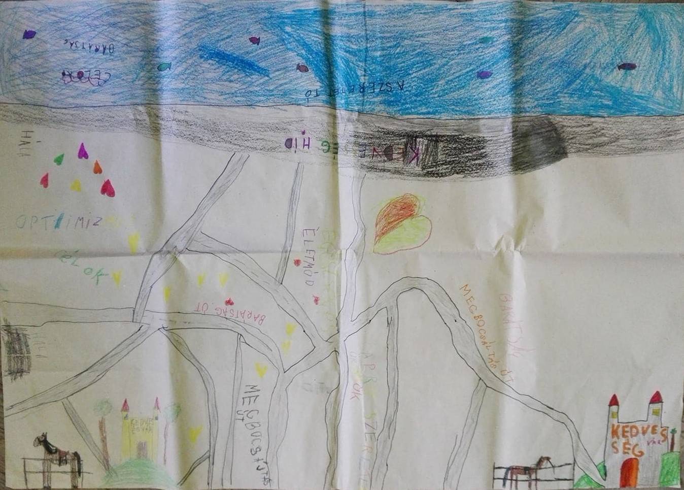Csoportmunkában rajzolták meg a tanulók a Boldogságvárhoz vezető út térképét.