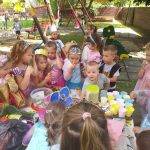 Elérkeztünk az utolsó Boldogságóránkhoz, melyet már nagyon vártak a gyermekek. Kíváncsian kérdezgették minden nap, mikor nyílik ki a Boldogvárunk kapuja. Előző nap már elkezdtük a szervezést, mert megkértem a szülőket, hogy az utolsó órához, aki szeretne, az beöltözhet királylánynak, tündérnek, lovagnak, királyfinak. A gyermekek reggel lelkesen hozták a ruháikat, mutogatták egymásnak. A szülők jelezték, hogy a gyermekek már nagyon várták ezt a napot, véletlenül sem szeretnének kimaradni belőle. Nagy meglepetésemre az egyik kislány készített nekem is egy királylányos karkötőt a mulatsághoz, ami nagyon jól esett. A gyermekek nagyon izgatottak voltak, nem győzték már kivárni a kapunyitást. Örömmel fogadták a varázsládán Boldog Dórát, vidáman üdvözölték. Kezdő relaxációs gyakorlat a „Repül a madár, szárnyalva száll, mert szabad madár” indítottuk el az órát. Azért választottam ezt, mert itt a nyár, amikor kicsit szabadabban élhetünk. A közös éneklést is a gyermekek kívánsága szerint választottuk ki, mert ez már az utolsó, a végéhez érkeztünk a Boldogságóráinknak. Már nem is kellett semmit mondanom, maguktól énekeltek, táncoltak. A szeretetfolyosón mindenki végig haladt, még mi felnőttek is. Örömömre szolgált, hogy milyen kedvesek tudnak lenni egymással szemben, egyre többen nyilvánították ki saját véleményüket. A mesehallgatási szokásainkat megtartva a mesepárnáikon ülve helyezkedtek el a gyermekek, meggyújtottuk a mesegyertyánkat, majd Dórával közösen mondták el, a már ismert mondókát, meghallgatták a mesét. Most nem szemléltettem, hagytam, hogy saját képzelőerejüket használják. A mese végén a Boldogságvárunk lépcsőfokait számláltuk, majd felidéztünk sok közös élményt. A „Mi vagyunk a Harangosok” közös alkotásunkat ismét elővettük. Jó volt látni, mennyire tetszett nekik. Felértünk a 10. lépcsőfokra. Minden kisgyermek választott egy szimbólumot, ami a legkedvesebb volt számára. Vére kinyílt a kapu, mehettünk a mulatságba. A” Harangosok” miután beöltöztek, az egész óvodában végigvonultunk, varázspálcámmal átváltoztattunk valamennyi dolgozózót tündérré, királylánnyá, ami mindenkinek mosolyt csalt az arcára. Az óvoda udvarán zenés, táncos napot tartottunk. Vidám hangulat vette kezdetét, ahol nemcsak mi, de a többi csoport is bekapcsolódott. A bálban természetesen az evés-ivás sem maradt el, minden ropogtatni valót elfogyasztottak a gyermekek. Az asztaloknál a boldogság kerekét készítették el, amit haza is lehetet vinni. Összegzés: A Boldogságórákat minden alkalommal várták a gyermekek A napi tevékenységeiken túl, mást is kaphattak a gyermekek, melyek jobb jókedve derítették őket, kicsit közelebb kerülhettünk egymáshoz. A mai nap megelégedéssel töltött el, ahogy láttam a vidám gyermek arcokat. Az egyik szülőtől visszajelzést is kaptam” Ez volt a legjobb nap az évben, melyet már nagyon várt a gyermeke, végre kinyílt a vár kapuja, ahol nagyon jól érezte magát.” JOBB VELED A VILÁG