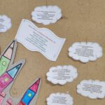 Boldogvár témája több tevékenységben is előkerült, a fantáziájukra hagyatkoztam. Térben is építettünk egy Boldogvárat és síkban is megalkottuk azt. A nagy kartonra ragasztott vár fölé felhőkbe írtam az egyéni céljaikat. A hónap során a szülőket is bevontam a tevékenységbe. Azt a feladatot kapták, hogy próbálják kitalálni, melyik felhőben megjelenő cél tartozhat a saját gyermekükhöz.