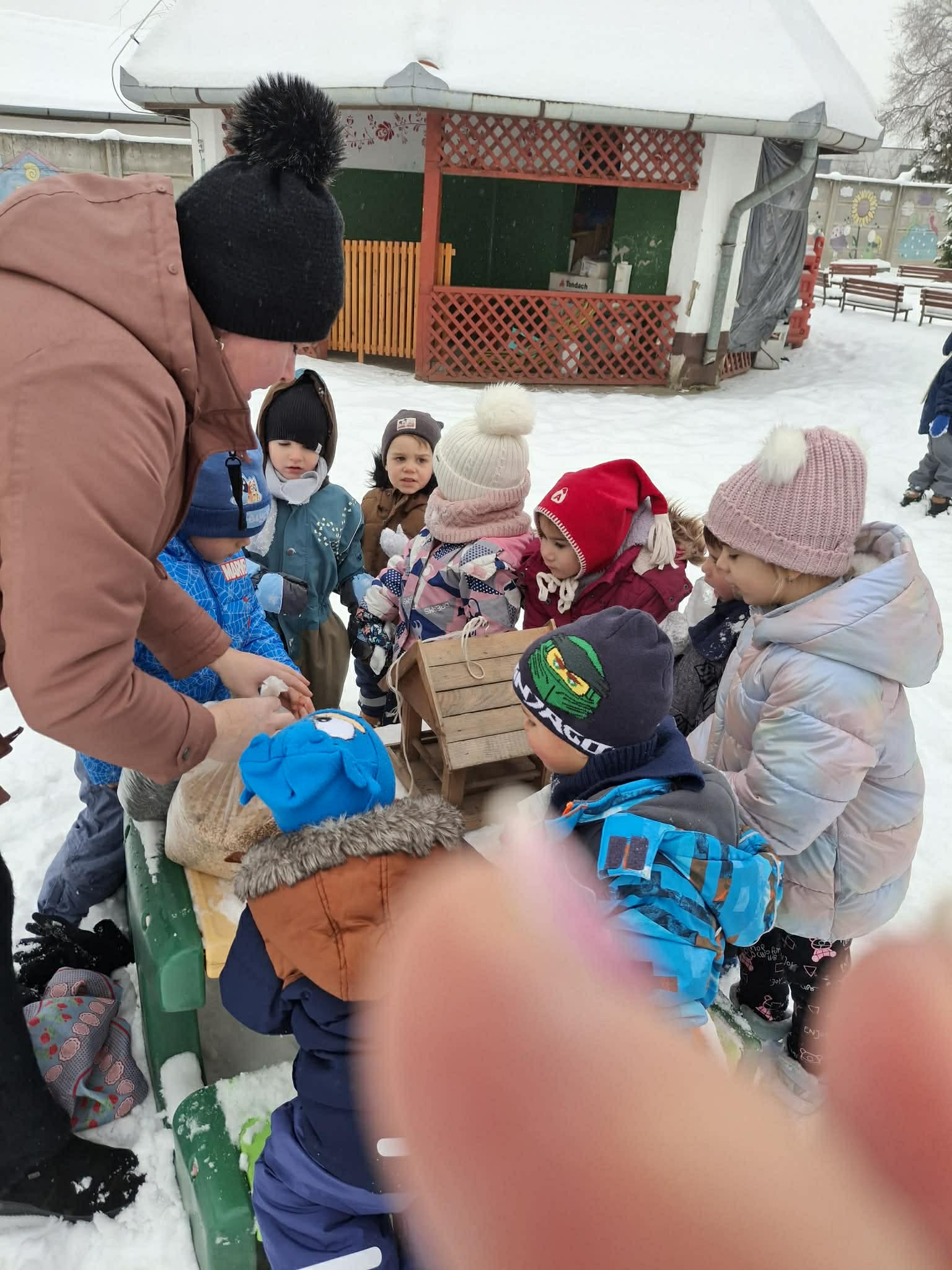 a madáretetők folyamatos feltöltése.