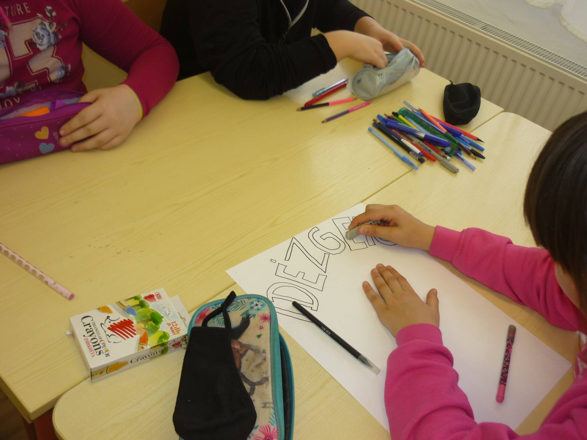 A második osztályfőnöki órán a gyerekek az Idézgető című feladat megoldása mellett döntöttek. Plakátokat készítettek, amiket aztán a faliújságra tettünk ki. A diákok csoportmunkában dolgoztak.